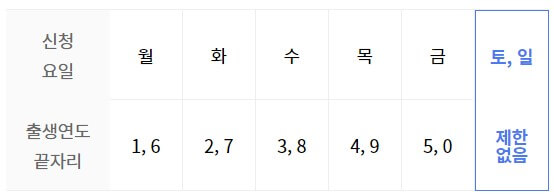 3월 27일부터 3월 3일까지는 5부제로 생년끝자리로 신청을 받으며 이후부터는 5부제 상관없이 신청이 가능합니다.
